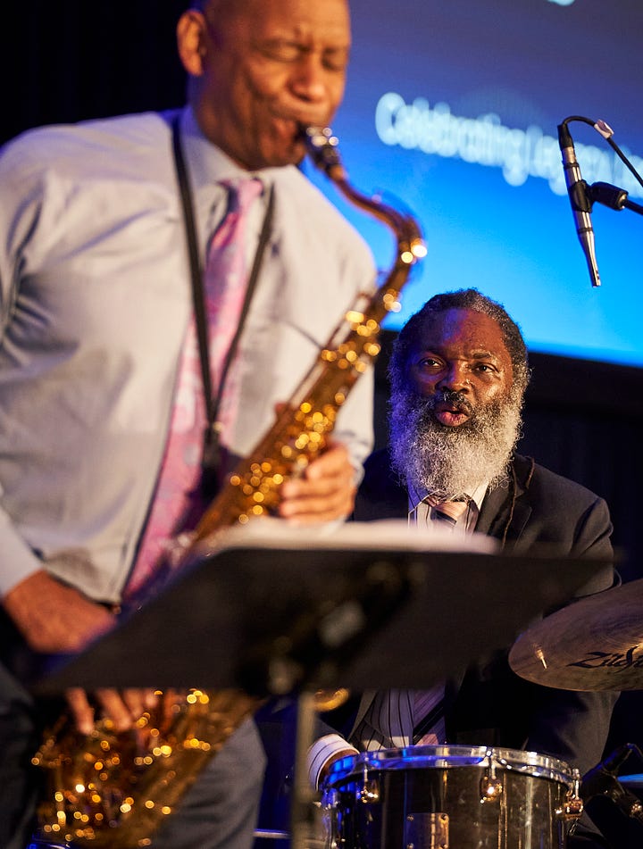The venue did no favors to Marsalis’s regular quartet’s pianist Joey Calderazzo and bassist Eric Revis, but drummer Dana Hall — director of DePaul University’s Jazz Studies program, as well as busy gigging and recording — fit in well without rehearsal, several times clicking creatively with Marsalis, drawing him out. And Jahari Stampley, a 25 year-old Chicagoan who came up through Jazz Institute education programs and won the 2023 Herbie Hancock Piano Competition, sat in. I don’t expect reviews of performances at expensive fundraising events, but when we speak of jazz being underfinanced it may be newsworthy that 400-some attending for dinner, tickets ranging from $200 to $500 per seat, with paddle-raise $-pledging and sponsorship opportunities raised approximately $96,000. Nice night.
