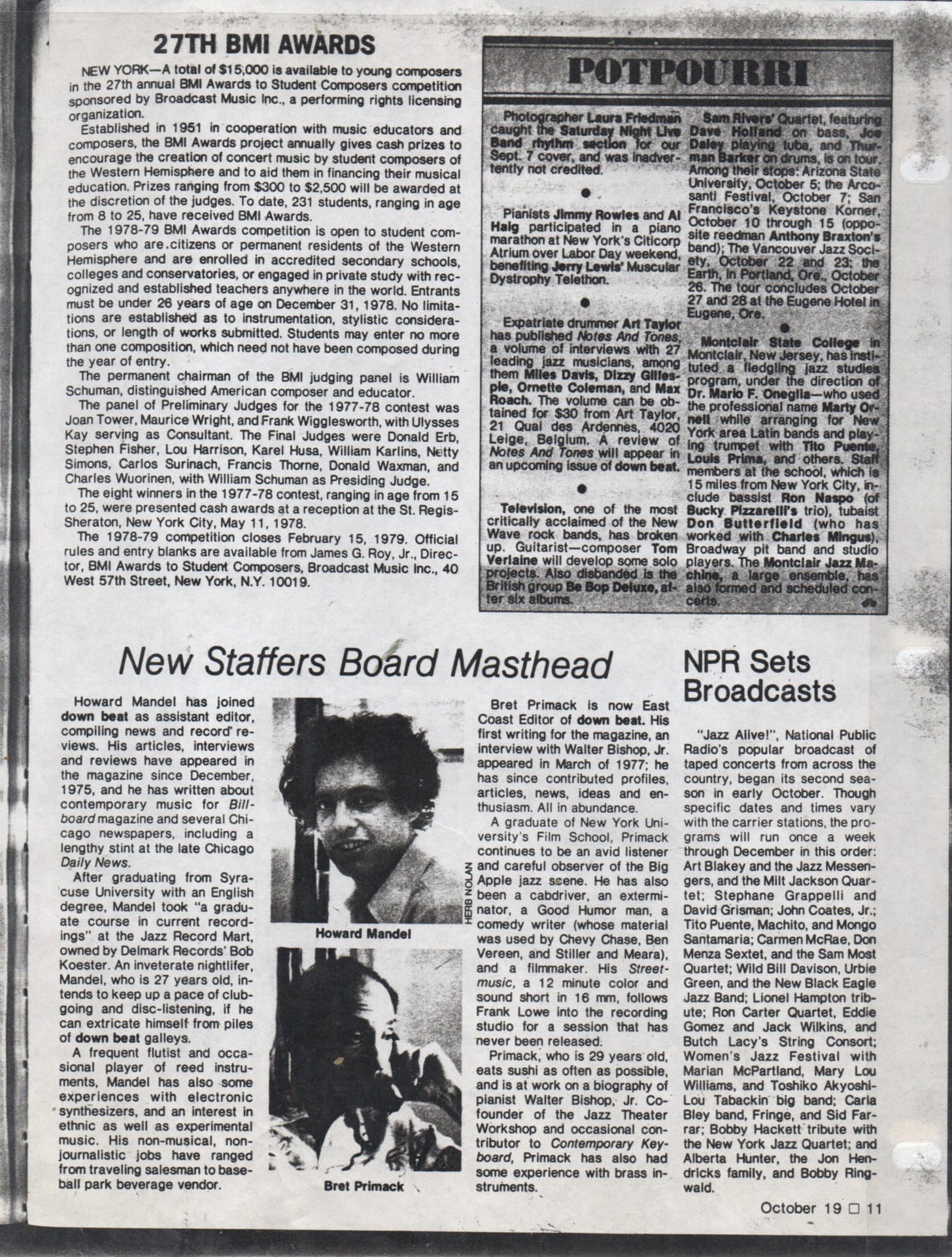 Bret and I each made big moves into professional jazz journalism back in 1978, as reported in DownBeat, where I ended up editing his dispatches. We’ve been friendly ever since, sharing many enthusiasms (including admiration for Ben Hecht).